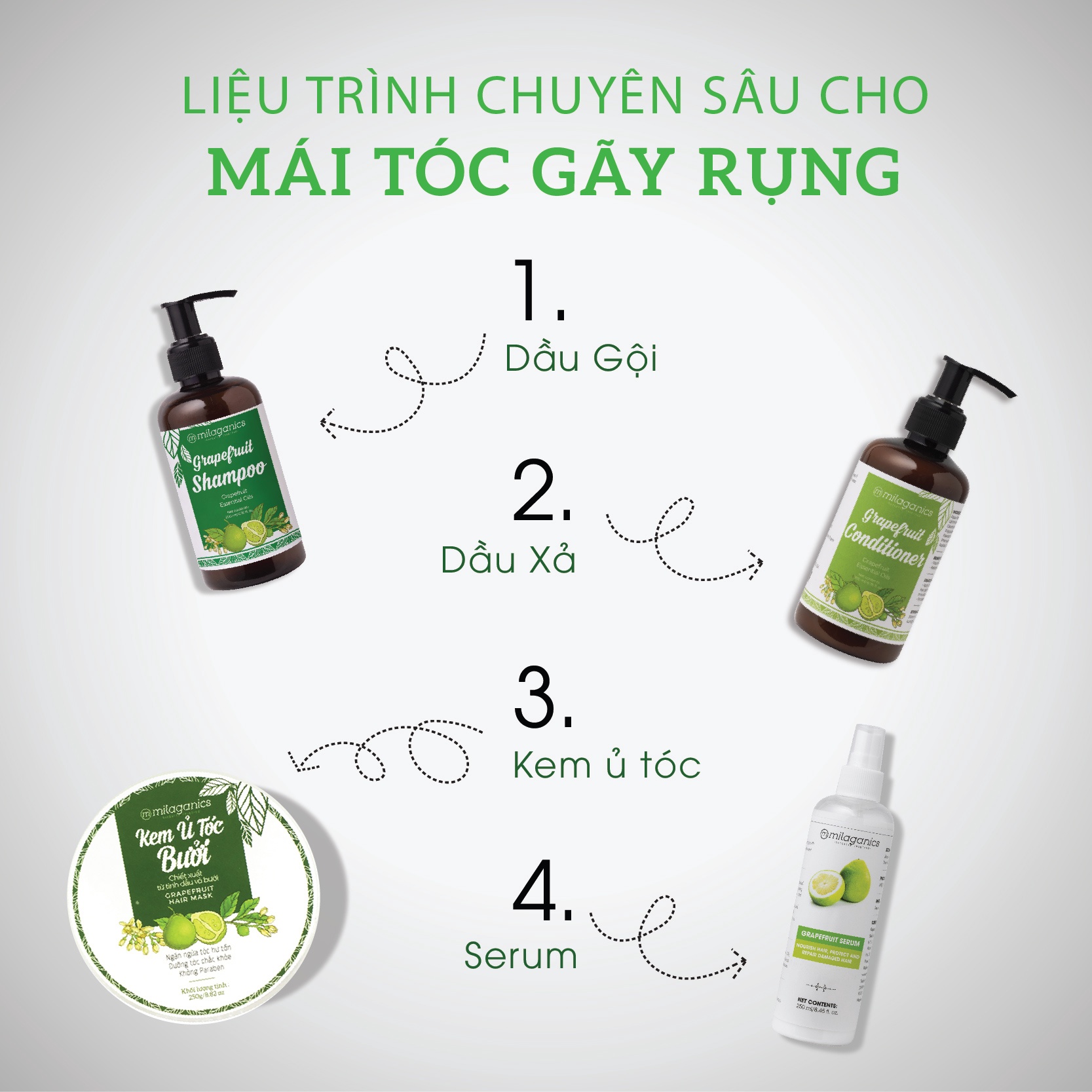 - Hiểu được điều này, Milaganics mang đến sản phẩm dầu gội bưởi với sự kết hợp độc đáo giữa tinh dầu vỏ bưởi – vốn nổi tiếng với công dụng giảm rụng tóc, hỗ trợ mọc tóc – các hoạt chất thiên nhiên, Keratin, Biotin cùng công nghệ sản xuất khoa học.